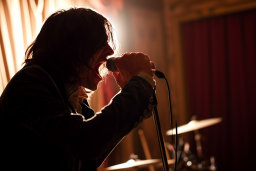 - Sängern auf der Bühne, die die ganze Intensität einer Live-Show einfangen.