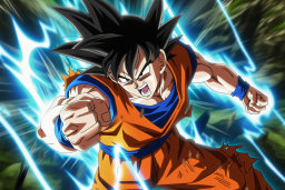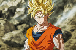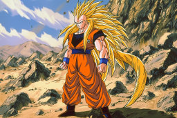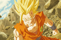 - Imágenes de Goku como Super Saiyan, rebosante de poder y dedicación