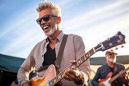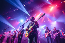 - Des images de guitares sur scène, capturant l'énergie et la passion des musiciens,