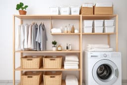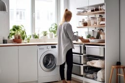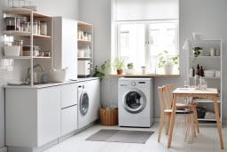 - Photos of washing machines integrated into laundry room settings, for a realistic context